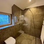 Ferienhaus Am Schlosspark Hohenpriessnitz includes a walk-in shower for your comfort. A hairdryer and towels are also included in the bathroom.